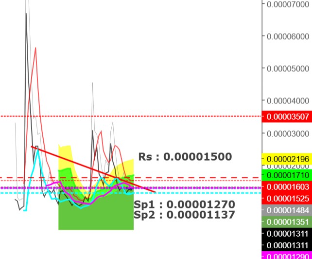 SHIB will continue to downtrend if the price passed the support price of the pattern below $0.00001500